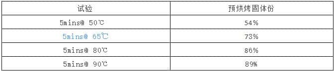 表6 不同温度低温烘烤下 固体份结果