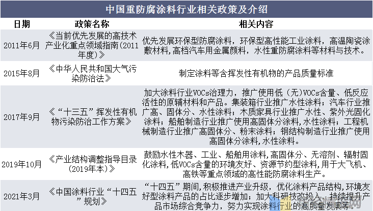 重防腐涂料是防腐涂料中技术水平较高、最具代表性和影响力、最有发展潜力的一类防护涂料,也是衡量一个国家涂料工业发展水平的重要标志之一。因此,可以说重防腐涂料兴旺,则涂料工业也兴旺。那么问题来了,推动重防腐涂料发展的因素都有哪些?环保政策就是其中之一。据悉,自2015年以来中国环境保护政策趋严,绿色化经济成为社会经济发展主旋律,在重防腐涂料方面,国家层面出台了一系列政策规范行业朝环保节能化方向转型发展。整体来看,国家政策正推动行业向高性能、绿色环保方向升级。